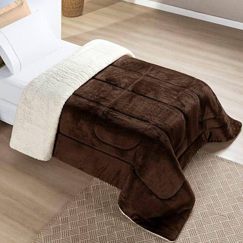 Apresento a vocês nosso Coberdrom Everest. Dupla face, matelassado em manta siliconizada, um dos lados é produzido em Sherpa fofinha como novelo de lã de carneiro, e outro lado em mantinha flannel aveludada. Super quentinho e aconchegante, proporcionará uma bela noite de descanso.
