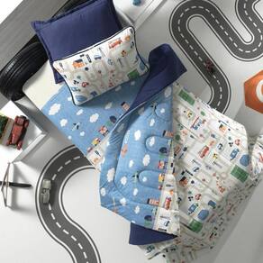 O Edredom Auto Pista Solteiro é encantador e tem o poder de transformar a cama na estrela da decoração do quarto dos pequenos. É feito com as melhores matérias-primas: possui fio egípcio e é 100% algodão.