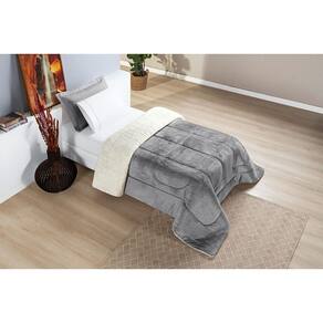 Edredom Solteiro Pele Carneiro Coberdrom Super Quente - Cinza