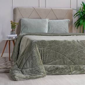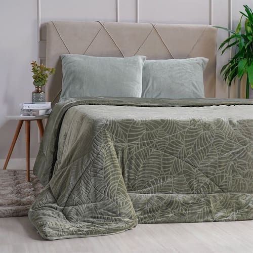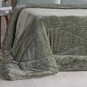 Edredom Solteiro Plush Sense New Dupla Face Toque Flannel 160x220cm Oliva Escuro -
