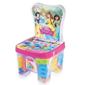 Com esse banquinho a criança irá se divertir aprendendo a língua Portuguesa e as operações matemáticas. Após a brincadeira e o aprendizado basta guardar as peças (44 itens) dentro do banquinho das Princesas da Disney. Possui 4 peças personalizadas para as princesas.