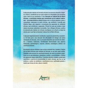 A educação pela tradição oral de matriz africana é um processo educativo complexo e diverso, reconhecido em um vasto número de comunidades afro-brasileiras como a base da sua constituição. O livro Educação na Tradição Oral de Matriz Africana: a constituição humana pela transmissão oral de saberes tradicionais – um estudo histórico-cultural dialoga com as culturas populares, povos e comunidades tradicionais de matriz africana, cuja existência é marcada pelo Atlântico Negro, pelo sequestro e escravização das populações do continente africano, suas resistências e superações. O Brasil foi o país que recebeu o maior número de pessoas submetidas à escravidão. Com a Diáspora Africana, a prática da educação pela tradição oral africana reconfigurou-se no Brasil ao longo dos séculos para o que hoje se denomina Tradição Oral de Matriz Africana. A educação hegemonicamente reconhecida é aquela de característica eurocêntrica. De forma geral, essa educação tem dificuldades em dialogar com outras concepções de educação, como os processos educativos que ocorrem em contextos e territórios tradicionais, invisibilizando historicamente seus aspectos intelectuais, epistemológicos, corporais, culturais, cosmológicos, afetivos e de constituição humana. Na relevância dessas reflexões é que se situa o presente livro, trazendo a Tradição Oral de Matriz Africana como sinônimo de Educação, no seu mais amplo sentido. Entendida como processo de constituição humana, por meio da oralidade corporificam-se em suas detentoras e detentores a cultura, a ancestralidade, a história das populações negras desde África. É processo educativo fundado e guiado pela consciência e exercício da ancestralidade de matriz africana, que traz na sua essência o caráter de resistência e constituição do ser, reafirmando perante o mundo suas formas de viver, educar e reexistir.