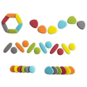 Este conjunto de Seixos Arco-íris Júnior inclui 36 seixos cor de terra em 3 tamanhos e 6 cores: azul, verde, amarelo, laranja, cinza e marrom. As pedrinhas têm uma sensação quente e aderente para ajudar no empilhamento e na investigação sensorial. Também inclui Guia de Atividades. Os tamanhos são 1. 6"L, 2. 25"L e 3"L.
