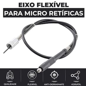 Eixo Flexível para Micro Retíficas Multimarcas Chicote 1 metro Dremax Eixo Flexível para Micro Retíficas / Chicote com cabo de 1 metros Dremax. De construção robusta, excelente qualidade, e não esquenta  mantenha sempre lubrificado . Transforma a sua Micro Retífica em uma ferramenta mais versátil. - Marca: Dremax - Eixo acompanha 1 pinça de 3mm - Kit exclusivo com 12 acessórios Haste 2,35mm  pinça não inclusa para as hastes  - Comprimento: 1 metro - Alcance Estendido: Com um chicote de 1 metro, este eixo flexível proporciona um alcance estendido, permitindo acesso fácil a espaços apertados e tornando as tarefas intricadas mais acessíveis. - Compatível com as principais micro retíficas do mercado, como Dremel 3000, Hammer, Wesco, Mondial, Titanium, Gamma, Einhell, Sagyma, Nove54, Vonder, AWT, Fort, Dexter, Black Decker, Charbs, Mallory, Western, entre outras. - Não adapta a Dremel 4.000 - Ideal para trabalhos delicados de precisão - Excelente dissipação de calor, não aquece o cabo - Transforme a sua Micro Retífica em uma ferramenta mais versátil - Ideal para lugares difíceis de alcançar e trabalhos finamente detalhados - Este eixo flexível é o complemento perfeito para sua ferramenta rotativa - Amplamente utilizado com kits de polimento, brocas, escovas de aço, escareadores, rodas lamelares, pedras montadas e rebolo - É recomendado a lubrificação dos rolamentos para aumento de vida útil e resfriamento do conjunto - Qualidade  - Comprimento do eixo: 80cm - Comprimento total: 1.08 metro - Acompanha chave em L para travar o mandril - Peso bruto: 300g - : 90 dias ITENS INCLUSOS - 1 Eixo Flexível para micro retífica - 1 Ponta Diamantada Cilíndrica 6mm - 1 Ponta Diamantada Cilíndrica 5mm - 1 Ponta Diamantadas Cônica 4mm - 1 Ponta Diamantadas Oval 4mm - 1 Ponta Diamantadas Cônica Ponta Fina 3mm - 1 Suporte para Tubos de Lixa - 2 Tubos de Lixa 8mm Grão 80 - 2 Tubos de Lixa 8mm Grão 80 - 2 Tubos de Lixa 8mm Grão 180