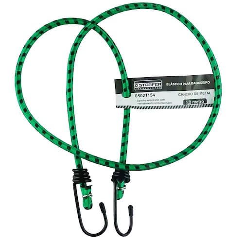 Elastico para Bagageiro Starfer 1 Metro com Gancho em MetalElástico para bagageiro com gancho em metal reforçado e revestimento plástico.Indicado para unir e prender cargas ou bagagem leve.Especificações técnicas:Contem: 01 Elastico Para Bagageiro Starfer 1 metroTamanho aproximado: 1 x 1 x 1 metro (A x L x C)Cor do elastico: Verde e PretoPeso aproximado: 100gMarca: StarferRef.: 05021154