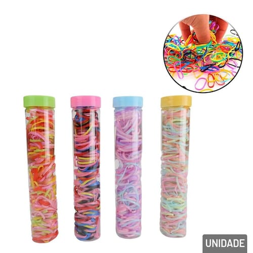 Diferenciais: 180 peças de elásticos em silicone coloridos. Material resistente para garantir durabilidade. Ideais para cabelos de todos os tipos e texturas. Evitam quebras e danos aos fios devido ao material macio.