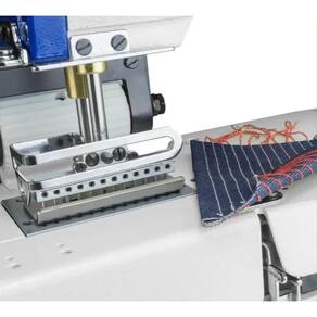 Máquina de 12 agulhas, 24 fios, motor Direct Drive 220V. Ideal para produzir bermudas, calça jeans, lençol com elástico, moda íntima, tecidos leves, médios e pesados. Lubrificação automática, luz de LED 3 estágios, bitola 6.4 mm, 2 catracas, potência do motor 550W, mesa e estante com rodinhas. Catraca Dentada em Três Pontos, Superior, Inferior e Traseira. Looper Independente com Ajuste Fácil da Agulha. Parada de Agulha configurável via painel. Sistema sem Volante Manual. Transporte Vertical.Funções