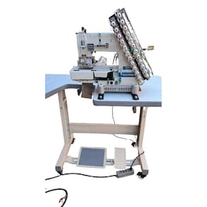 Elastiqueira ponto corrente de base cilíndrica com motor servo eletrônico de 550W acoplado ao cabeçote.