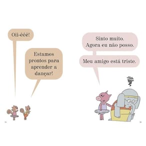 Nesta aventura do elefante Geraldo e da Porquinha, a dupla reflete sobre individualidade e superação com muito humor — e dança! Quem disse que elefantes não sabem dançar? Às vezes, o que parece uma derrota pode se tornar uma grande vitória. O elefante Geraldo estava muito triste porque não sabia dançar. Mas a Porquinha, sua melhor amiga, resolveu ajudá-lo. E quando até mesmo ela achou que Geraldo realmente não levava jeito para a dança, algo surpreendente acontece. Mais uma vez, Mo Willems expressa as questões do universo infantil de um jeito inteligente e alegre em uma história sobre superação de limites e valorização da individualidade, perfeita para leitores iniciantes. Indicado para leitores a partir de 4 anos.