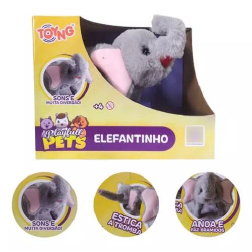 Elefantinho Pelucia PlayFull Pets - Com Sons, Anda e Estica a tromba - Toyng