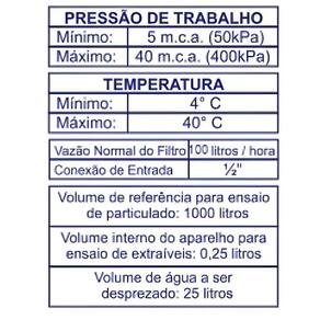 Certificado conforme o Inmetro: - Acreditação N: OCP 0134 - Registro: 004262/2018 - Este aparelho destina-se ao uso em água potável, atendendo a portaria N 2.914 do ministério da sáude e norma brasileira ABNT NBR 16098:2012