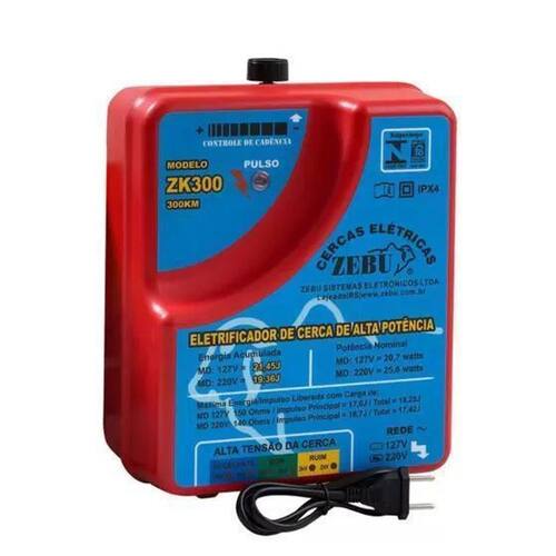 Alimentação: 220v Raio de ação: 6.500 metros Tensão de saída sem carga: 10,5 kv Intervalo entre pulsos regulável: 1,1 a 2 segundos Energia acumulada: 220v 19,36 joules Energia liberada: 220v 17,42 joules Consumo de energia: 220 v: 0,61 kw/dia Características: Com regulagem de cadência. Transformador semi-blindado. Voltímetro integrado que mostra a tensão da cerca. Possui c.I. De proteção contra danos do circuito, evitando qualquer possibilidade do eletrificador enviar tensão alternada para cerca. Leitura automática de cerca: emite sinal sonoro bipe quando a cerca está caida. Desviador interno de raios de baixa intensidade. Alarme com aviso de cerca com baixa tensão. Exige no mínimo, cinco hastes para aterramento. Saiba mais, clique aqui. Ncm: 85437092 Dimensões do produto: 33 x 24 x 13 cm Peso do produto: 4,216kg