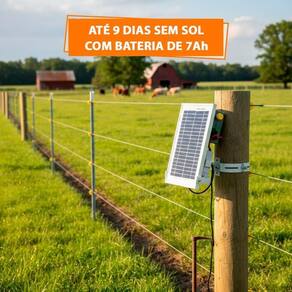 O sistema tem alta autonomia. Com a bateria de 7 Ah totalmente carregada, o eletrificador funciona por até 9 dias mesmo se o tempo estiver nublado ou chuvoso.