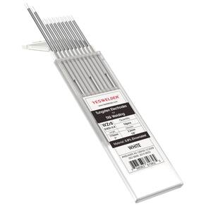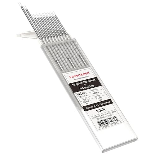 Eletrodo de tungstênio de soldagem TIG 0,8% zircônia 1/8" x 7" (branco, WZ8/EWZr-0,8) pacote com 10 - BRANCO-0,8% ZIRCONADO: Os eletrodos de zircônia são populares devido à relativa facilidade de soldagem de ligas de alumínio e ligas de magnésio em amperagem mais alta necessária. Eles funcionam excepcionalmente bem em aplicações AC. - Certificação AWS: norma AMERICAN Welding Society AWS A5.12M/A5.12:2009. - DESIGN PERFEITO: Ao verificar a cor da embalagem externa, você pode distinguir rápida e facilmente a cor e o modelo dos eletrodos de tungstênio, economizando seu tempo e reduzindo a possibilidade de erros. - EMBALAGEM PROFISSIONAL: Embalagem a vácuo, sem oxidação, alcançando preservação por muito tempo. - Especificações: Diâmetro: 1/20.3 cm; Comprimento: 18 cm; Quantidade: 10 unidades.