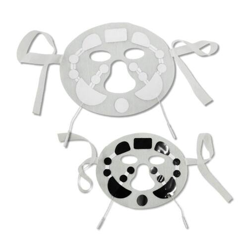Os Eletrodos Extraorais Pró-Fono (EEPF) – Máscara Facial – podem ser acoplados em qualquer aparelho de eletroestimulação com com saída de pino banana de 2mm. A estimulação elétrica escolhida (bioestimulação, drenagem e relaxamento muscular) ocorrerá em vários músculos faciais simultaneamente e de forma harmoniosa.