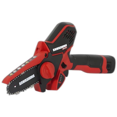 Especificações Potência do motor: 220 W Capacidade de corte: 100 mm (Sabre 4') Velocidade de corte: 7 m/s Modelo de corrente: 1/4' mini - .043 - 28DL Consumo do motor: 16,8 V Peso: 1,2 kg Dimensões: 360 x 80 x 177 mm Itens Inclusos Eletrosserra a Bateria Kawashima HSP-100 Fonte transformadora bivolt 2 baterias recarregáveis de lítio Perguntas Frequentes (FAQ) Pergunta: Qual o diâmetro máximo de corte da Eletrosserra Kawashima HSP-100?