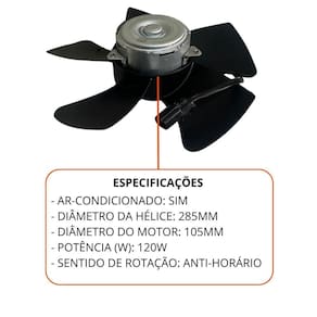 Seja bem-vindo - melhor custo beneficio do mercado - novo e com Aplicações : - honda: 19030rb6z11, 19030paaa01 Observações: - ar-condicionado: sim - diâmetro da hélice: 285mm - diâmetro do motor: 105mm - potência w : 120w - sentido de rotação: anti-horário Sentido de rotação: horário Atenção - recomendamos que o produto seja instalado por um qualificado. - não nos responsabilizamos pelo mal uso do produto. - qualquer dúvida, por gentileza, utilize o campo de perguntas. Marca: Não Informado