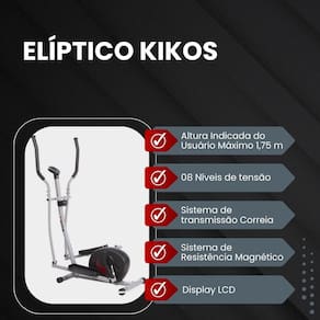 O Elíptico Kikos 4004 é um equipamento residencial para quem deseja um treino de cárdio prático e eficiente no conforto de casa.