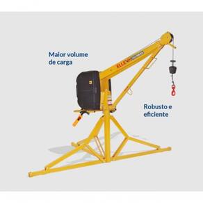 Equipamento que tem como função realizar o transporte vertical de materiais na construção civil. Seus diferenciais são: tripé treliçado, que facilita o transporte e garante maior estabilidade, e lança extensiva que permite aumentar o comprimento do braço de 1,25 m até 2 m. A instalação do equipamento deve ser feita por profissionais treinados.