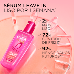 O Sérum Capilar Elseve Liso dos Sonhos protege os fios contra umidade e frizz, garantindo um liso impecável e duradouro. Sua tecnologia termoativada cria uma película protetora que sela a fibra capilar, mantendo os cabelos alinhados, sedosos e livres de frizz por até 1 semana, mesmo após várias lavagens.