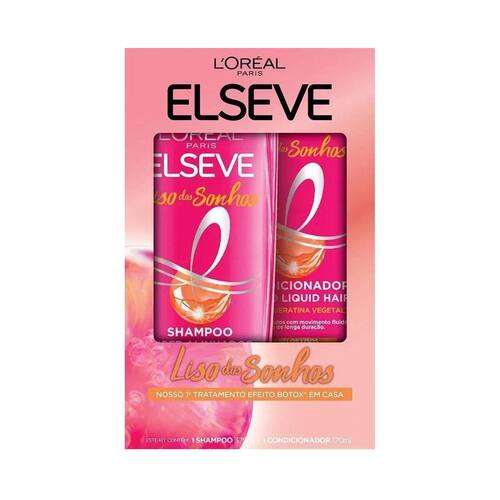 O Kit Elseve Liso dos Sonhos é uma combinação de shampoo e condicionador desenvolvida para proporcionar cabelos lisos, alinhados e com frizz controlado.