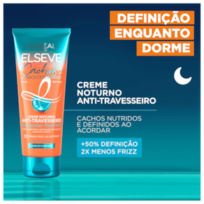 Tratamento Noturno para cabelos cacheados. Elseve L'Oréal Paris Cachos dos Sonhos Anti-Travesseiro te faz acordar com cachos definidos, nutridos e com 2x menos frizz.