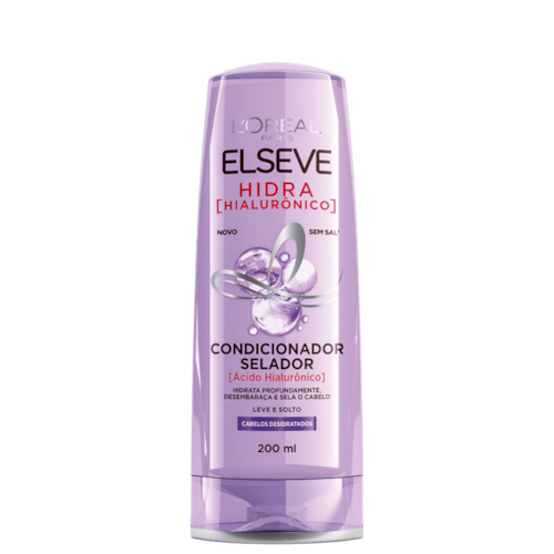 O Condicionador Elseve Hidra Hialurônico, de L'Oréal Paris, confere hidratação intensa, a partir da fórmula com Ácido Hialurônico, ativo capaz de reter até 1000x seu peso em água, preenchedor e hidratante.