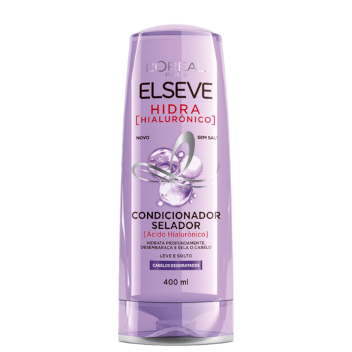 Condicionador para cabelos secos e ressecados. Elseve L'Oréal Paris Hidra Hialurônico retém hidratação profunda e controle do frizz para uma transformação instantânea dos fios.