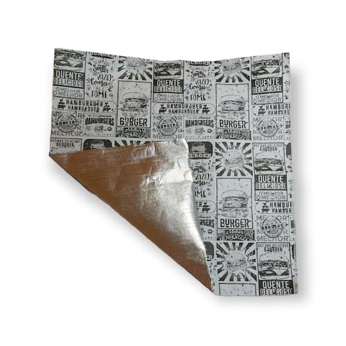 O Embala lanche com alumínio da pluma é um papel feito para proporcionar integral impermeabilização, conserva a temperatura e correta higienização de produtos fatiados, assados, lanches entre outros.