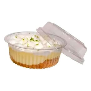 A Embalagem Doce Redondo G640 Galvanotek é ideal para acondicionar doces, sobremesas, bolos no pote e outros alimentos com segurança e excelente apresentação. Fabricada em material Polietileno resistente e 100% transparente, possui capacidade de 170ml e formato redondo, valorizando a visualização do produto. Seu design prático permite empilhamento, transporte seguro e conservação dos alimentos. O pacote com 300 unidades é perfeito para atender a produção em larga escala de confeitarias, docerias e negócios de alimentação.