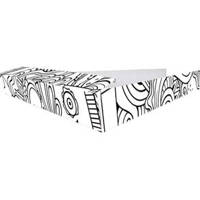 Produzida em cartão duplex Klabin, a caixinha possui o modelo branco e preto, que acrescenta um toque de elegância e sofisticação ao seu produto. Suas dimensões de 2cm x 17cm x 18cm AxLxC permitem que a fatia de pizza seja acomodada de forma adequada, evitando que ela se mova durante o transporte.