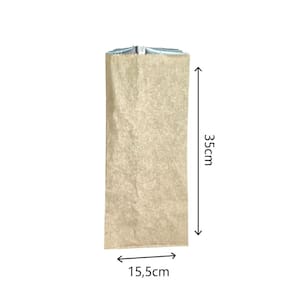 Gramatura: 60g total, 35g de papel kraft, e 25g de papel laminado.