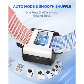 Projetada para diferentes tamanhos de cartões, esta máquina automática de embaralhamento de cartões KPAW X1 é versátil e compatível. A asa retrátil se ajusta facilmente para acomodar diferentes tamanhos de cartas com um simples puxar ou empurrar, garantindo um embaralhamento suave para qualquer jogo. Divirta-se jogando Texas Hold'em, Skip-Bo, Poker, UNO e Phase 10 jogos de cartas com a máquina automática de embaralhamento de cartas KPAW X1. Leve seus jogos de cartas para o próximo nível com a máquina automática de embaralhamento de cartas KPAW X1. - [Embaralhamento automático] - A máquina automática de embaralhamento de cartões KPAW X1 foi projetada com um dispositivo de embaralhamento automático. Esta máquina oferece uma maneira conveniente de embaralhar os cartões com um único toque, permitindo que você liberte suas mãos facilmente. Melhore sua experiência de jogo de cartas. - [Baixo ruído e alta qualidade] - A máquina automática de embaralhamento de cartões KPAW X1 se destaca de outros embaralhadores elétricos devido aos seus materiais de alta qualidade. Ele embaralha com menos ruído, garantindo uma experiência de jogo silenciosa e agradável. Resistente e durável, este equipamento premium é feito para durar, proporcionando a você uma experiência de jogo perfeita sempre. - [ALTA APLICABILIDADE] O design inovador torna a máquina automática de embaralhamento de cartões KPAW X1 altamente versátil. O embaralhador é adequado para Texas Hold'em, Skip-Bo, Poker, UNO e Fase 10. A asa retrátil permite acomodar diferentes tamanhos de cartão, melhorando sua adaptabilidade. Aproveite seus jogos de cartas com a máquina automática de embaralhamento de cartas KPAW X1. - [Adequado para artrite] – A máquina automática de embaralhamento de cartas KPAW X1 é uma ferramenta útil para aqueles com artrite que gostam de jogar pôquer. A operação fácil deste embaralhador não apenas evita a dor nas mãos das pessoas com artrite, mas também lhes dá uma melhor experiência de jogo. - [Embaralhamento altamente eficiente] - As rodas transportadoras de cartões de alta velocidade permitem que a máquina embaralhadora automática de cartões KPAW X1 embaralhe as cartas de forma rápida e eficiente, garantindo um embaralhamento suave e suave sem dobrar as cartas. Mantenha as cartas lisas como novas, mesmo após vários usos da máquina de embaralhar pôquer KPAW X1. - DICA: Se você quiser embaralhar as cartas mais completamente, sugerimos usar a máquina automática de embaralhamento de cartões KPAW X1 mais de uma vez.
