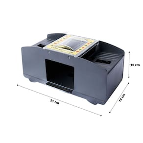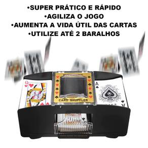 Informações Técnicas: Composição: Plástico e eletrônico. Capacidade: 2 baralhos. Comprimento: 21 cm. Largura 10 cm. Altura: 10 cm. Alimentação: 04 Pilhas AA (não inclusas) Peso total: 347 gramas.