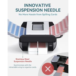 O embaralhador automático de cartões KPAW X1 é a melhor solução para embaralhamento eficiente de cartas. Ideal para jogos de cartas casuais e profissionais, esta máquina embaralhadora combina tecnologia avançada com facilidade de uso para elevar sua experiência de jogo. Basta pressionar o botão AUTO para começar a embaralhar. O sensor inteligente detecta cartões e para automaticamente quando o embaralhamento está concluído. Ao contrário de outros modelos mais antigos que exigem segurar o botão até que o embaralhamento seja feito, o KPAW X1 oferece operação sem usar as mãos para uma experiência perfeita. Compatibilidade versátil: lida com 1-2 decks de cada vez, adequado para Texas Hold'em, Bridge, UNO, Blackjack, etc. A asa retrátil se ajusta facilmente para acomodar diferentes tamanhos de cartas com um simples puxar ou empurrar, garantindo um embaralhamento suave para qualquer jogo. Recarregável e portátil: com uma bateria recarregável embutida, o KPAW X1 elimina substituições constantes de bateria. Seu design compacto e leve é perfeito para viagens, noites de jogos e férias em família. A porta USB-C permite recargas rápidas, mantendo seu embaralhador pronto para uso. Baralhamento de baixo ruído: projetado para operação de baixo ruído, este embaralhador garante um ambiente de jogo sem distrações. Aproveite seus jogos sem o incômodo de barulhos altos de embaralhamento, mantendo uma atmosfera relaxada. Design inovador e eficiência: o design elegante e moderno do KPAW X1 combina funcionalidade com estilo. Seu mecanismo avançado garante embaralhamento de alta eficiência, economizando tempo e esforço enquanto fornece desempenho confiável. Atualize seu jogo de cartas com o KPAW X1 Automatic Card Shuffler. Seja para jogos profissionais ou casuais com amigos, este embaralhador oferece conveniência e embaralhamento de nível profissional ao pressionar um botão. - [Botão de pressão única] - O embaralhador automático KPAW X1 começa a embaralhar com um único toque do botão AUTO. O sensor inteligente integrado detecta cartões e para com precisão quando o embaralhamento é concluído, ao contrário dos modelos mais antigos que exigem segurar o botão até que o embaralhamento esteja concluído. Desfrute de embaralhamento conveniente e sem usar as mãos, o que o torna uma ferramenta essencial para qualquer entusiasta de jogos de cartas. - Compatibilidade versátil: a inovadora asa retrátil acomoda diferentes tamanhos de cartão com um simples empurrar ou puxar. A máquina de embaralhar automática pode lidar com 1-2 baralhos de cada vez, tornando-a perfeita para vários jogos de cartas, incluindo Texas Hold'em, Bridge, UNO, Blackjack, etc., garantindo um embaralhamento suave e contínuo sempre. - Recarregável e portátil: equipado com uma bateria recarregável embutida, o KPAW X1 Automatic Shuffler foi projetado para máxima conveniência. Chega de necessidade de substituições constantes de bateria, e seu design compacto facilita levar com você aonde quer que você vá. A porta de carregamento USB-C permite recargas rápidas, garantindo que seu embaralhador esteja sempre pronto para a ação. - [Embaralhamento de baixo ruído] - Projetada para operar mais silenciosamente do que outras, a máquina de embaralhar garante um ambiente de jogo sem distrações. Ao contrário de alternativas barulhentas, este embaralhador permite que você se concentre no seu jogo sem o incômodo de ruídos barulhentos altos. Desfrute de uma experiência de jogo mais silenciosa e agradável com este embaralhador eficiente, seja jogando pôquer de apostas altas ou uma rodada casual de UNO. - [Design inovador e alta eficiência] – O KPAW X1 Auto Shuffler apresenta um design inovador que combina funcionalidade com estilo. Seu mecanismo avançado garante embaralhamento de alta eficiência, economizando tempo e esforço. O design elegante e moderno não apenas parece ótimo, mas também melhora a experiência geral do usuário. - Observação importante: este embaralhador automático de cartões não funciona durante o carregamento. Não use durante o carregamento. Há um indicador de luz na porta de carregamento do embaralhador. Quando estiver carregando, a luz ficará vermelha e, quando estiver totalmente carregada, a luz ficará verde. - Produto patenteado - todos os direitos invertidos.