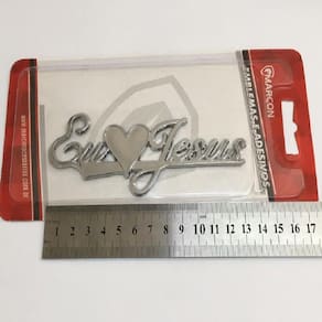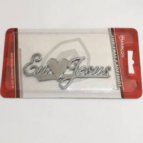 Emblema Adesivo Alto Relevo 3D Eu Amo Jesus Cromado Cromado Único Emblema adesivo em abs decorativo em alto relevo eu amo jesus