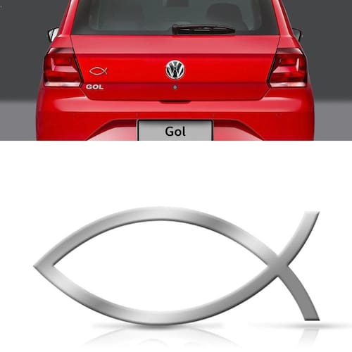 Emblema Decorativo Peixe Cromado Alto Relevo Cristão