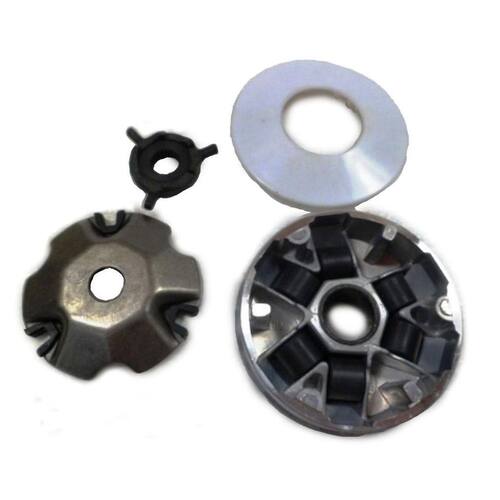 Embreagem Dianteira Completa Pro Scooter 50cc Max. Acompanha: Placa De Tração Interna, Placa De Tração Externa, Disco Cônico, Ventoinha Plástica, Catraca de Partida, Batente Separador E Roletes Contrapeso.