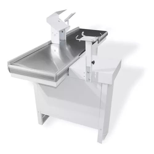 Com formato em L, construído com chapa metálicas e inox, o checkout leve conta com gaveta manual sem pino de impulsão com porta cédulas, pés reguláveis e para-choque à prova de impacto. Além disso, acompanha kit automação, tornando o trabalho mais fácil e prático.