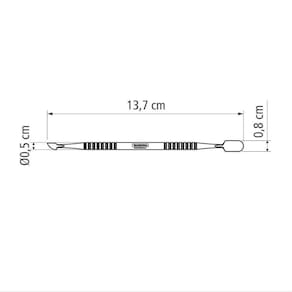Esterilizável em autoclave.Características GeraisEAN137891112245280DUN1417891112245287NCM8214.20.00Peso Líquido0,0150 kg.Peso Bruto0,0200 kg.Metragem0,000117 m.Dimensões Embalagem (Compr. X Larg. X Alt.)10x 55x 213 mm.Dimensões Produto (Compr. X Larg. X Alt.)137x 5x 8 mm.Observações