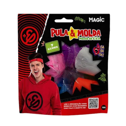 Transforme a brincadeira em pura criatividade com a Massa Pula Molda Enaldinho! A Enaldinho Massa Pula e Molda E.V.A. 70g é o produto ideal para estimular a imaginação das crianças, inspirada no famoso YouTuber Enaldinho. Com sua textura macia e flexível de E.V.A., permite criar formas incríveis que também podem pular! Com 7 cores diversas, a diversão e a criatividade estão garantidas.