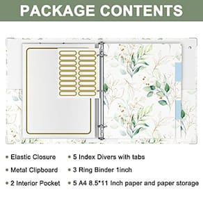 Pasta Rouidr de 3 argolas com prancheta, organizador de fichário de 1 polegada, fichários tamanho carta de 8,5" x 11" com divisórias, abas e mangas transparentes, material escolar, material de escritório, fichário de portfólio, folhas