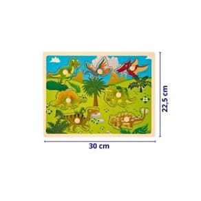 O Quadro Encaixe com Pinos Dinossauros é um brinquedo educativo que encanta as crianças! Produzido em madeira, vem com tabuleiro ilustrado no tema dinossauros e 7 peças para encaixe, todas com pinos que facilitam a manipulação pelas mãos das crianças. Um brinquedo seguro, lúdico e pedagógico, ideal para crianças a partir de 3 anos. Além de ser divertido, o brinquedo de encaixe contribui para o desenvolvimento cognitivo, estimulando a memória, a coordenação motora fina, a percepção visual e a associação entre formas e imagens. Ao encaixar cada dinossauro em seu lugar, a criança aprende brincando, desenvolvendo a paciência, a atenção e a concentração. É um brinquedo que une diversão, aprendizado e qualidade. Indicado para crianças a partir de 3 anos (conforme fabricante). Conteúdo da embalagem: 1 tabuleiro com 7 peças para encaixar Medidas do tabuleiro: 30cm x 22,5cm x 1,5cm (CxLxA) Composição: Madeira