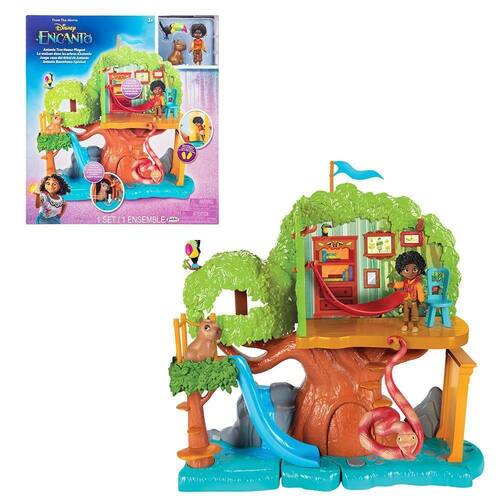 Cenário dos quartos de Encanto Explore o mundo mágico de Encanto com o Antonio's Tree House Room Playset. Tenha suas cenas favoritas do filme em que Antonio usa seu poder mágico para se comunicar e brincar com seus amigos animais em seu quarto Este playset da casa na árvore foi inspirado no quarto da floresta tropical de Antonio no filme e vem com um boneco de Antonio, além de 6 acessórios, incluindo seus amigos, a capivara, o tucano e a jibóia gigante. A porta do quarto de Antonio destrava quando ele fica na frente dela e se abre para ele entrar Antonio pisa na pedra do tronco da árvore para revelar o esconderijo secreto para sua amiga capivara. Balance Antonio ou um amigo animal na rede, deslize-os para baixo no toboágua ou esconda-os na copa secreta da árvore em expansão Com o playset da casa na árvore de Antonio, você terá horas de diversão enquanto explora o dom mágico de Antonio com seus amigos animais Homologação Inmetro: CE-BRI/IQB 005170 53495/20-002 Ean: 7897500597481