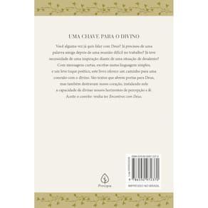 Uma chave para o divino. Você alguma vez já quis falar com deus Já precisou de uma palavra amiga depois de uma reunião difícil no trabalho Já teve necessidade de uma inspiração diante de uma situação de desalento Com mensagens curtas, escritas numa linguagem simples, e um leve toque poético, este livro oferece um caminho para uma conexão com o divino. São textos que abrem portas para deus, mas também destravam nosso coração, instalando nele a capacidade de divisar nossos horizontes de percepção e fé. Aceite o convite: venha ter encontros com deus.