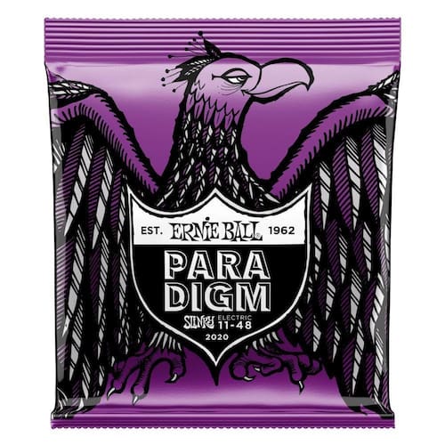 Encordoamento 011-048 Guitarra Power Slinky Paradigm As cordas Paradigm Slinky são as cordas mais resistentes do planeta - GARANTIDO. O conjunto de cordas Paradigm Eletric Slinky fornece força sem precedentes e maior vida útil da corda enquanto mantém 100% do timbre e sensibilidade. A expertise da Ernie Ball na fabricação de cordas ultra-reforçadas de aço estão em todas as cordas da linha Paradigm, assim como um patenteado reforço na bolinha final de cada corda, garantindo mais tensão e resistência contra a fadiga das cordas, afinando mais rápido e segurando a afinação mesmo nas condições e estilo mais exigentes. Utilizando o processo de nanotratamento das cordas Everlast com um inovador e aperfeiçoado sistema de enrolamento das cordas, a Paradigm proporciona ultra resistência à corrosão e poeira. Experimente um jogo da primeira corda com vida prolongada que vale a pena ser tocada Modelo P02020 - Power Slinky (011 - 014 - 018 - 028 - 038 - 048)