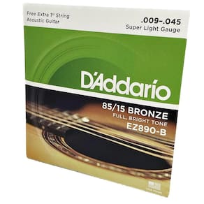 Somos Distribuidores autorizados A linha de cordas D'Addario 09 Bronze vão te surpreender com o brilho no som, sustain e durabilidade. Proporcionam um timbre perfeito Utilizado por músicos em todo o mundo. - Modelo EZ 890-B - Tensão Super Light leve - Contém 6 cordas de aço + 1 extra - Presas com bolinhas coloridas Marca: Daddario (Original) Ean: 7806126112367