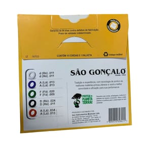A viola caipira fez (e ainda faz) parte da história do Brasil e hoje é considerada um instrumento que chama a atenção pelo seu formato pequeno e sonoridade voltada para o sertanejo raiz, ritmo consagrado por São Gonçalo, o padroeiro dos violeiros no país. E como estamos falando de um instrumento especial, nada melhor do que aproveitar tudo o que tem para oferecer com cordas para viola caipira de alta qualidade. Esse encordoamento para viola caipira da São Gonçalo, por exemplo, é todo feito em aço inoxidável e cobre prateado natural. A sua tensão média produz uma sonoridade agradável e gostosa de ouvir, satisfazendo até os músicos mais exigentes.