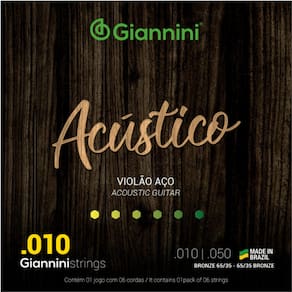 O encordoamento para violão aço Acústico GESWAM é indicado para músicos que gostam de um encordoamento com som brilhante e limpo. Todos os encordoamentos Giannini são produzidos no Brasil, em nossa fábrica em Salto, interior de São Paulo. Bronze 65/35