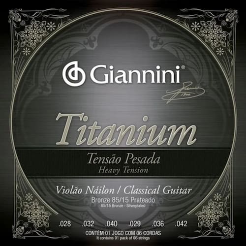 A série Titanium é série para quem quer o som mais puro no seu violão náilon. Revestidas com Bronze 85/15, a Giannini Titanium GENWTA é indicada para quem quer o melhor encordoamento no seu violão náilon, com toque mais pesado.